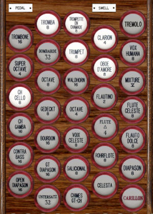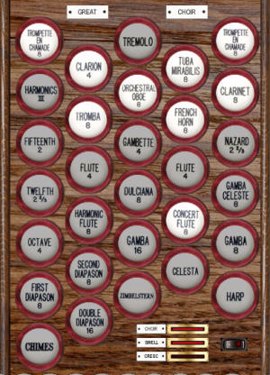 For music that includes vocal parts (eg Handel's 'For unto us a Child is born' from the Messiah), these vocal parts have been recorded using the many orchestral sounds on the organ.